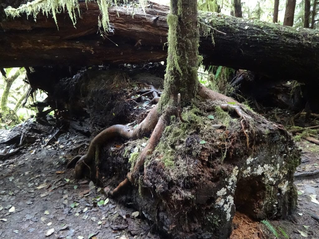 - Seedlings of trees β Western hemlock, Douglas-fir, Sitka spruce, and others germinate in the decaying wood.